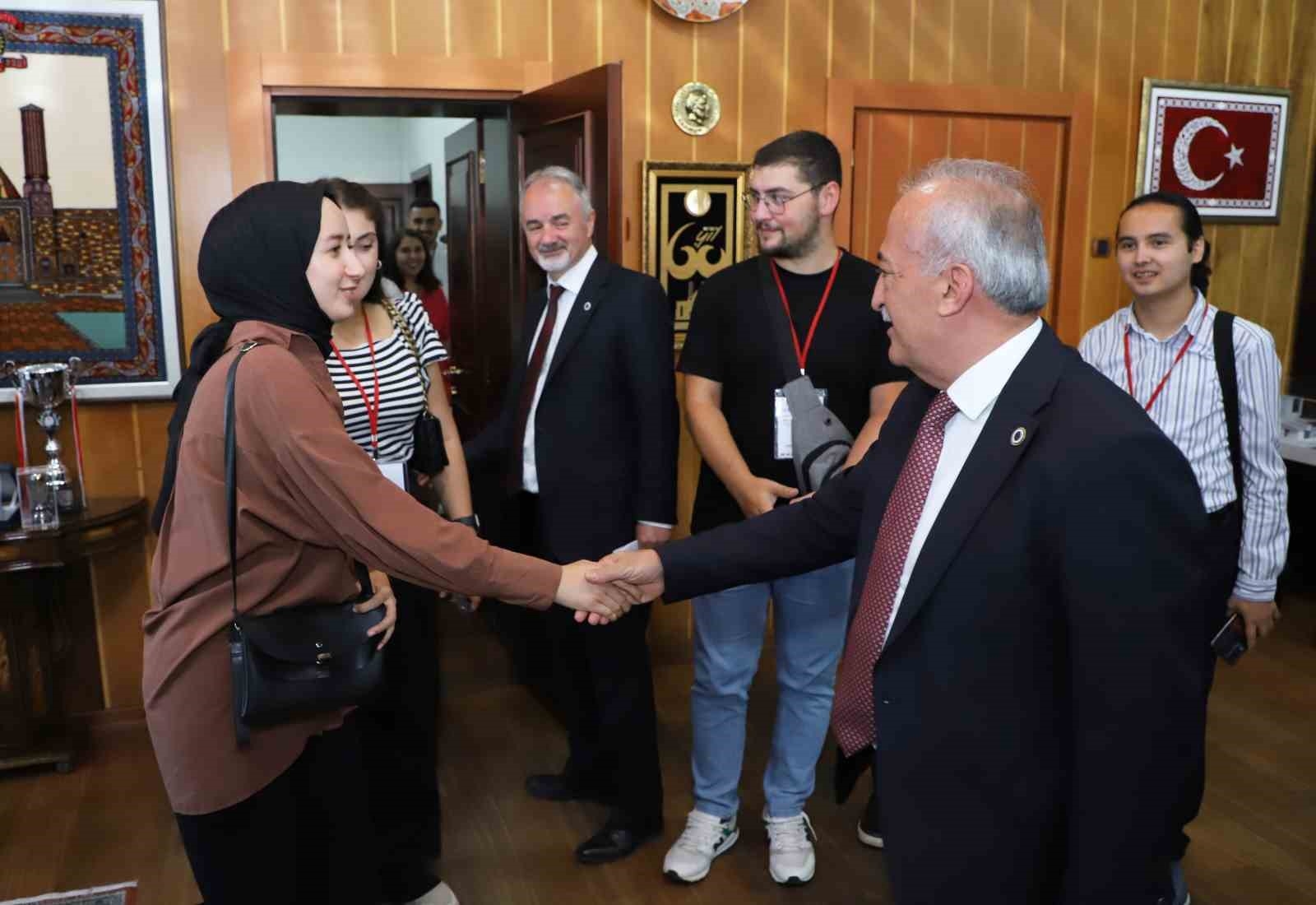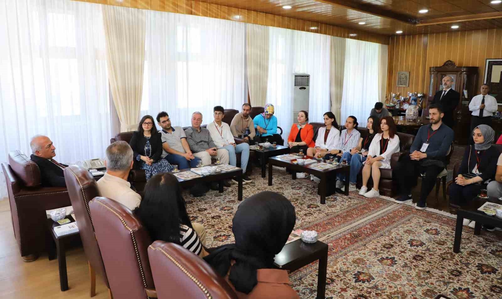 Öğrenci Dekanlığı Dekanı Prof. Dr. Yaşar Totik ve ATAKARMER Müdürü Prof. Dr. Neslihan Kulözü'nün refakat ettiği öğrenciler, Rektör Çomaklı ile bir araya geldi. Atatürk Üniversitesinin böylesine önemli bir organizasyona ev sahipliği yapması ve toplantıya katılan öğrencilerin ziyareti dolayısıyla duyduğu memnuniyeti dile getiren Rektör Çomaklı, konuklarına üniversite hakkında bilgi verdi.