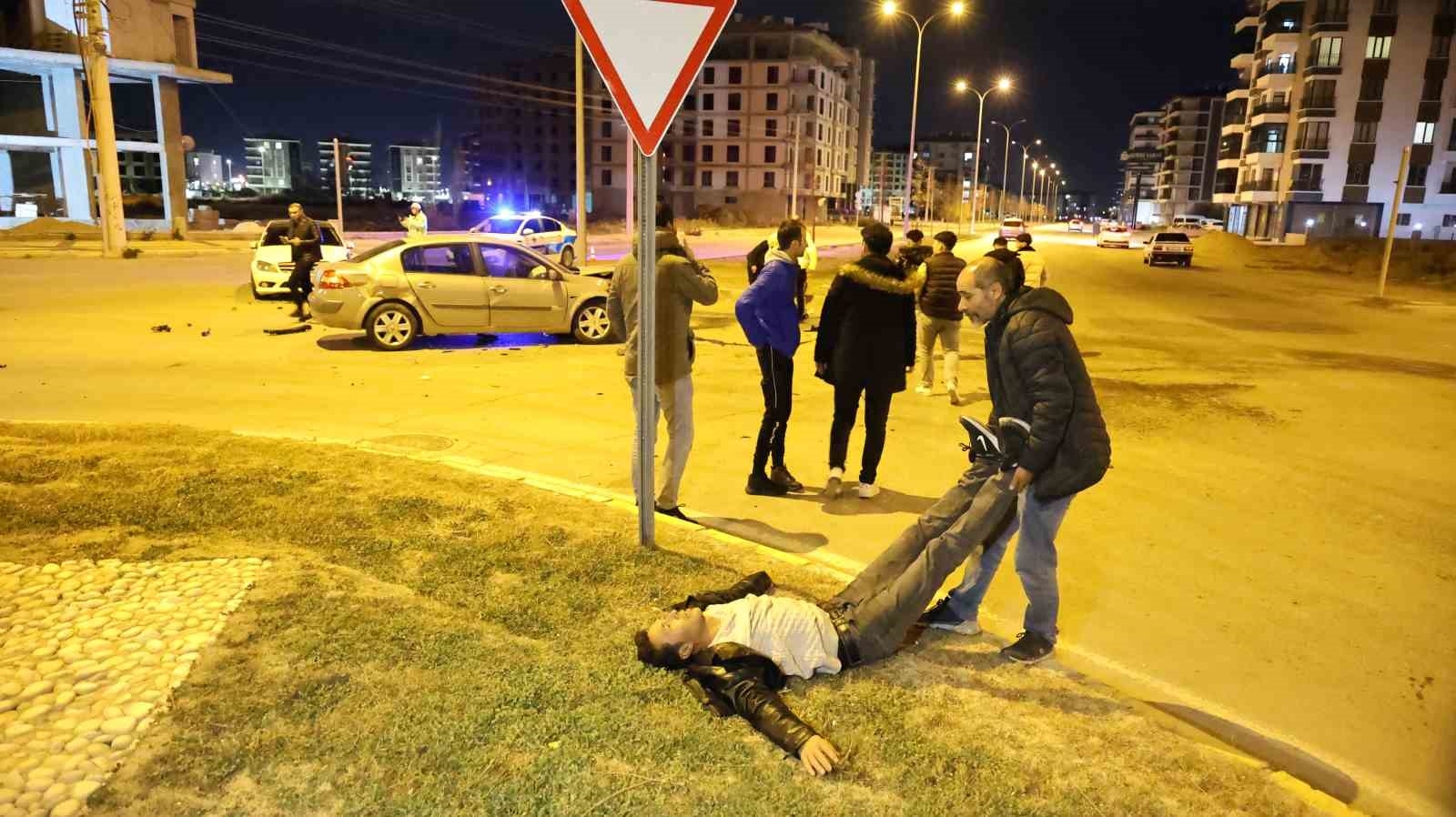 Aksaray'da iki otomobilin çarpışması sonucu meydana gelen trafik kazasında 2 kişi yaralandı. Kazaya karışan sürücü girdiği şokun etkisiyle önce bayıldı, ayılıp ağladı ve sonra da arkadaşına sarıldı.