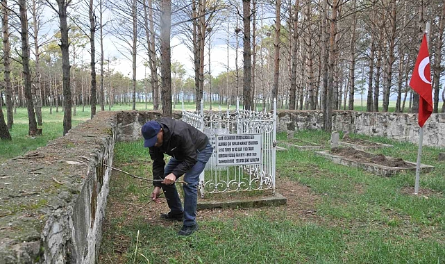 Duyarlı vatandaş daha sonra Yüzbaşı Faik Bey'in bulunduğu mezarın etrafını temizledi, mezarın üzerinde bulunan ağaç parçalarını ve istenmeyen otlarını topladı, mezarlığın içerisindeki bayrağı değiştirdi. Şehitlere dua eden vatandaş daha sonra bölgeden ayrıldı.
