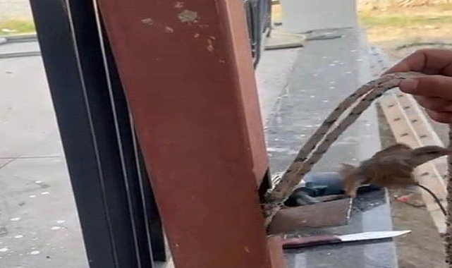 Osmaniye'nin Çardak köyünde, inşaat halindeki bir evin demir direğinin içine düşen serçe, çalışan ustaların demiri kesmesiyle kurtarıldı.