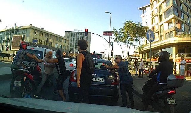Taraflar arasında yaşanan tekme ve yumruklu kavga anları ise bir araç kamerasına yansıdı. Görüntülerde yol üzerinde giden taraflar kırmızı ışıkta durduktan sonra birbirlerine saldırdığı, daha sonra da vatandaşların araya girerek tarafları sakinleştirmeye çalıştığı görülüyor.
