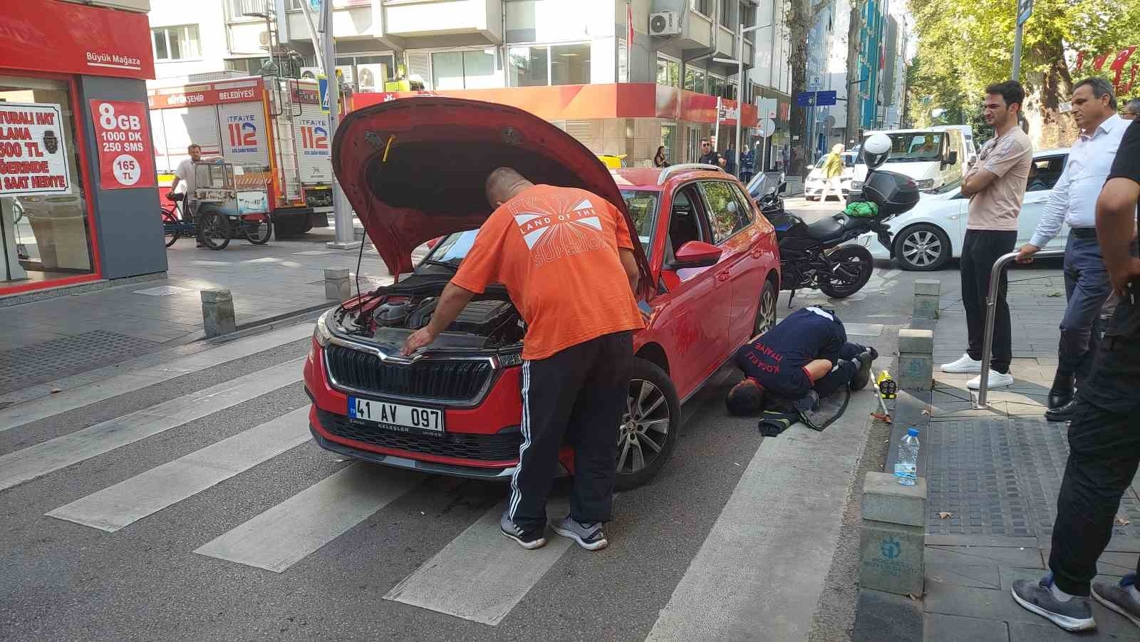 İlginç olay yürüyüş yolu üzerinde meydana geldi. 41 AV 097 plakalı otomobilin sürücüsü, araçtan gelen kedi sesini fark ederek hemen durdu. İhbar üzerine olay yerine Kocaeli Büyükşehir Belediyesi İtfaiye Daire Başkanlığı'na bağlı ekipler sevk edildi. Trafik polisleri de olay yerinde önlem aldı. Yaklaşık bir saat süren çalışmaya rağmen, sesi gelen kedi otomobilin motorundan çıkmadı. Bunun üzerine olay yerine zabıtaya bağlı çekici çağrıldı. Ahtapot ile havaya kaldırılan otomobilin altında yapılan çalışmada da kedi çıkmayınca araç bu kez sanayiye çekildi.