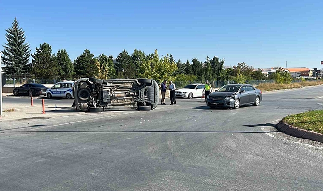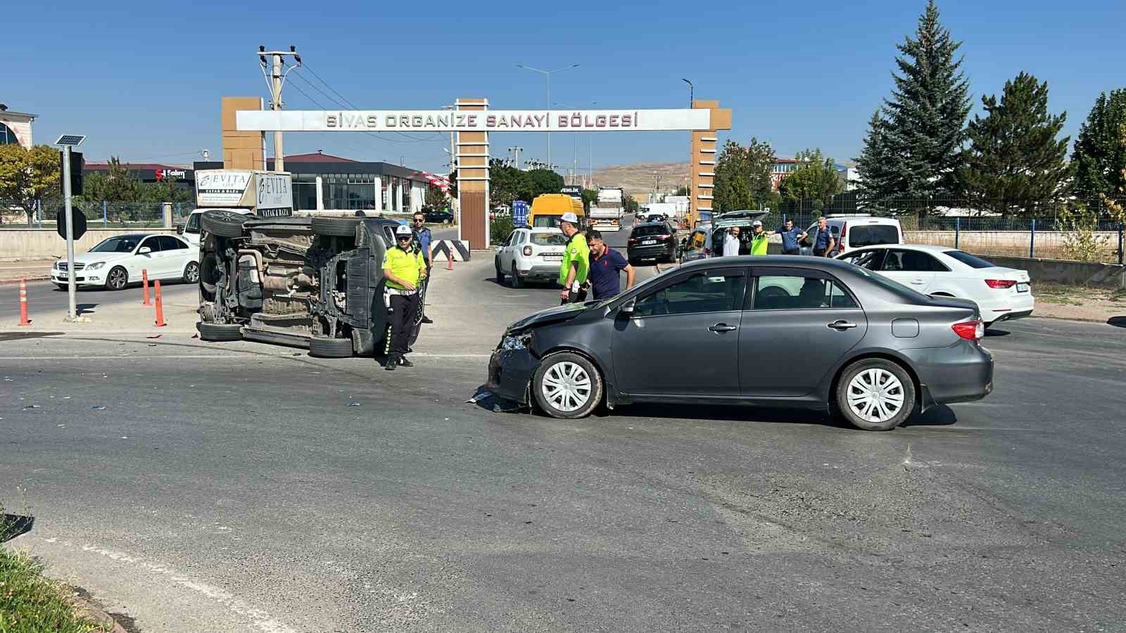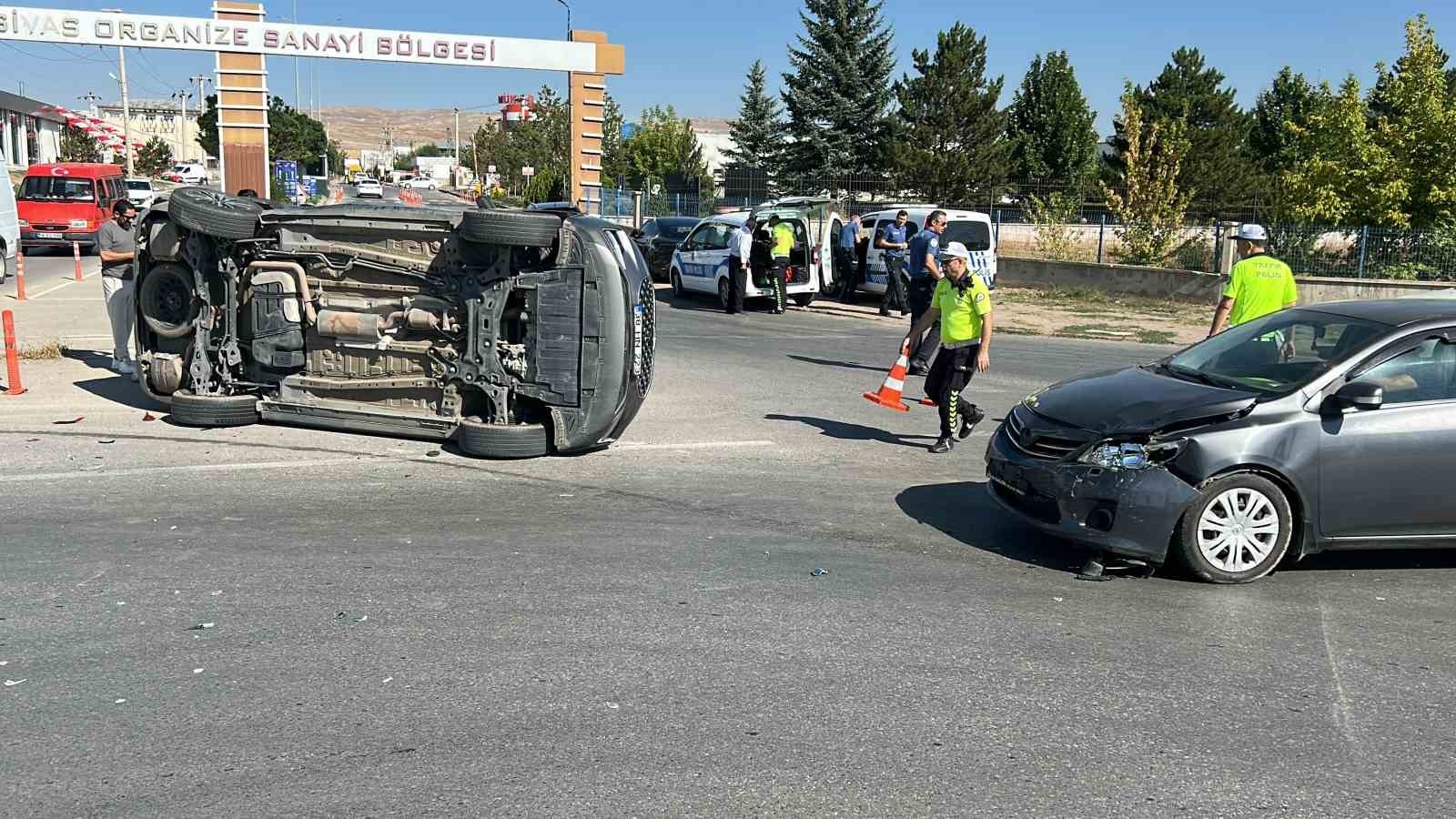 Sivas'ta otomobilin yandan çarptığı Çin cipi Chery yan yattı, sürücüsü yaralandı.