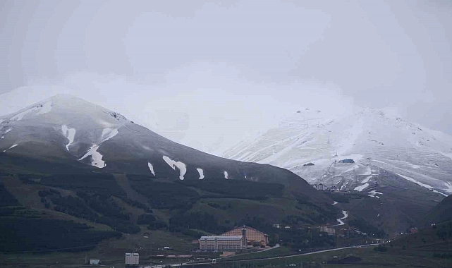 Erzurum'da Palandöken Dağı'nın yüksek kesimleri mayıs ayı olmasına rağmen beyaza büründü.