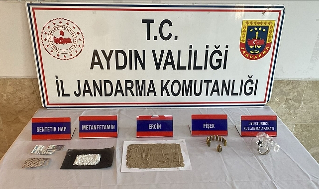 Aydın'da jandarma ekipleri uyuşturucu madde kullanımı ve ticaretinin önlenmesine yönelik çalışmalarını aralıksız sürdürüyor. Edinilen bilgiye göre, Aydın İl Jandarma Komutanlığı Kaçakçılık ve Organize Suçlarla Mücadele Şube Müdürlüğü ve Nazilli İlçe Jandarma Komutanlığınca uyuşturucu madde imal ve ticareti yapan şahsa yönelik icra edilen faaliyette M.Y. (19) isimli kadın şahsın kaldığı pansiyon odasına operasyon düzenlendi. Odada yapılan aramalarda; 53 gram eroin, 8 gram metamfetamin, 32 adet sentetik hap, 14 adet mermi, 1 adet bong aparatı ele geçirildi. Şüpheli şahıs M.Y. jandarma ekiplerince gözaltına alındı.