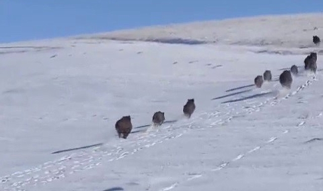 Görüntülerde, yaban domuzlarının yol kenarında otlayıp dolaştığı, ardından sürü halinde bölgeden uzaklaştığı görülüyor. Vatandaşın çektiği bu görüntüler, kısa sürede sosyal medyada yayılarak büyük ilgi gördü.