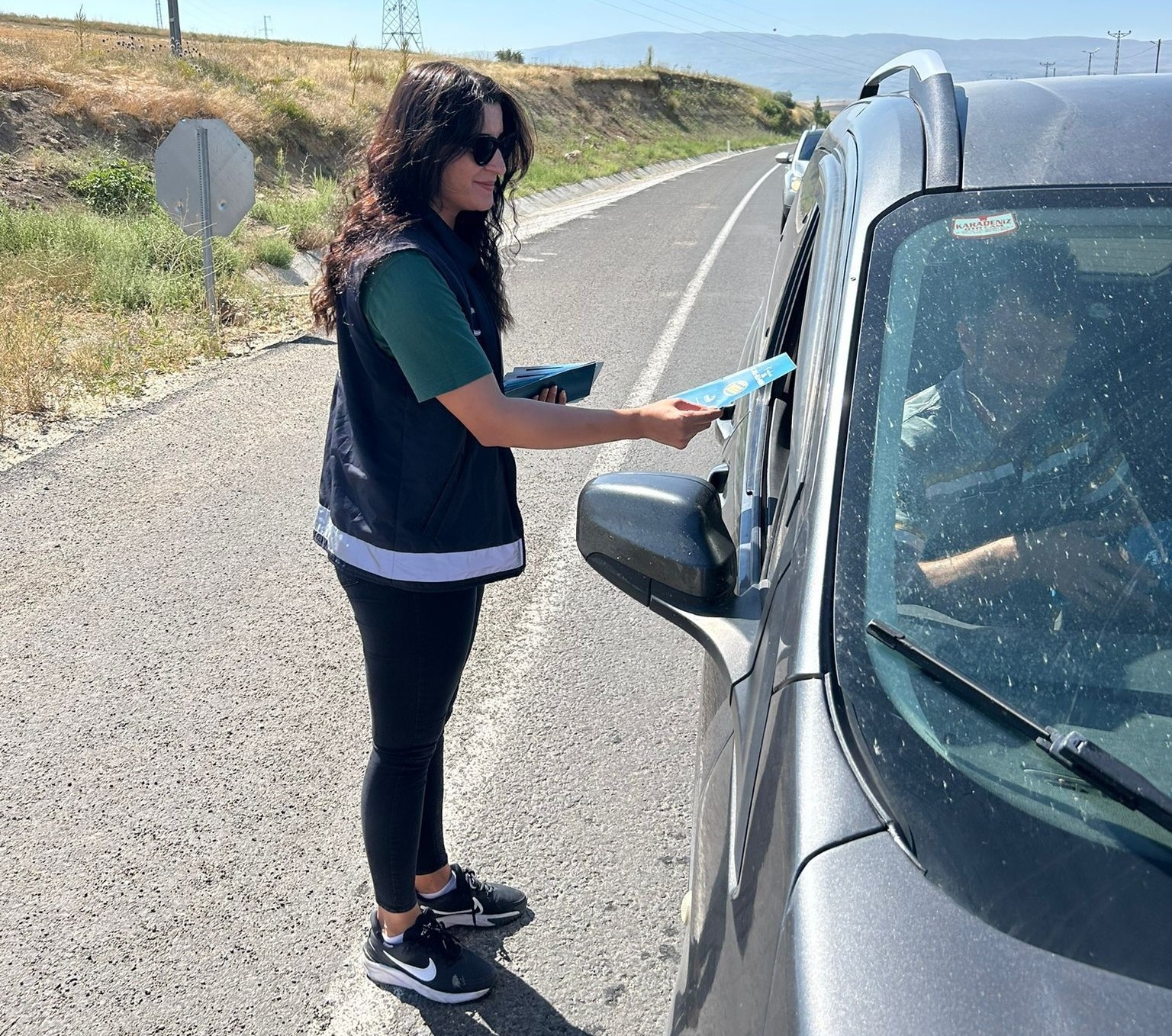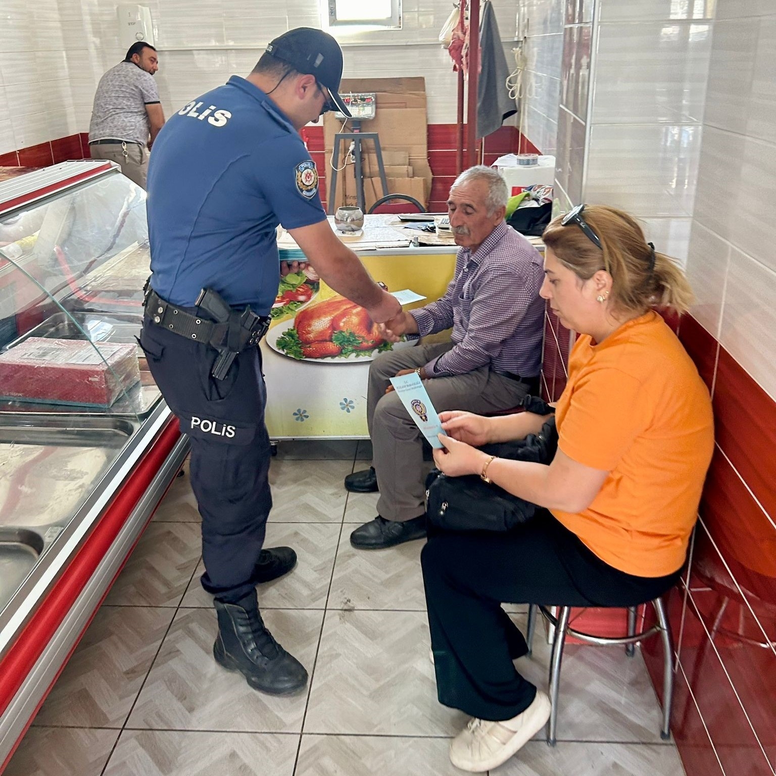 Erzurum'un Hınıs ilçesinde polis vatandaşa uyarıcı broşürler dağıttı, kadına şiddet konusunda bilgilendirme yaptı.