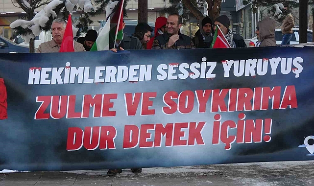 Erzurum'da, İsrail'in Gazze'ye saldırılarını protesto etmek üzere bir araya gelen hekim ve sağlık çalışanları, sessiz yürüyüşlerinin 55'inci haftada sürdürdü.