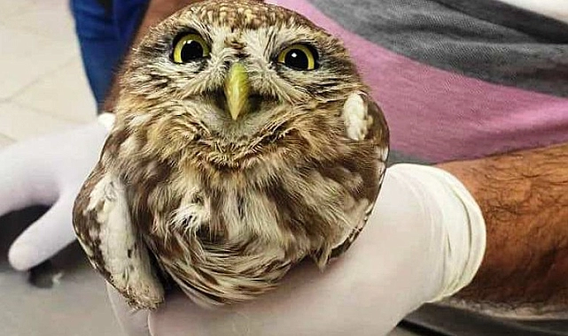 Batman'da yaralı halde bulunan puhu baykuşu, tedavi için Dicle Üniversitesine sevk edildi.