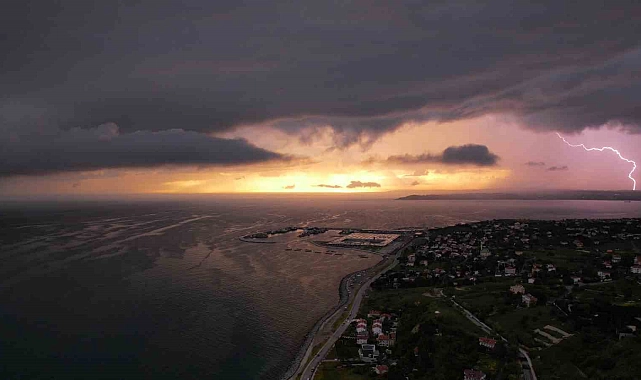 İstanbul'da etkili olan yağmurun ardından ortaya çıkan Raf bulutu (shelf cloud) gün batımı sırasında havadan çekilen görüntülerde ilginç manzaralar ortaya çıkarttı. Gün batımı, raf bulutu ve yıldırım ise aynı anda tek karede görüntülere yansıdı.