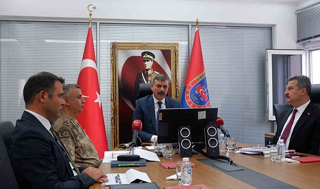 Vali Mustafa Çiftçi'nin asayiş değerlendirme toplantısına İl Jandarma Komutanı Tuğgeneral Metin Düz ve Emniyet Müdürü Kadir Yırtar'da katıldı.
