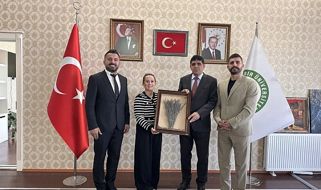 Iğdır Üniversitesi Rektörü Prof. Dr. Mehmet Hakkı Alma, “Doğa Benimle; Çevre Okuryazarıyım Her Yerde” projesinin yürütücüsü Dr. Adem Yulu ve “Ekolojik Edebiyat Okulu” projesinin yürütücüsü Nagehan Çakmak ve Yeşilay Şube Başkanı Adem Çakmak'ı makamında kabul etti.