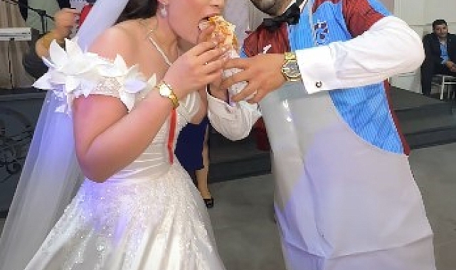 Trabzon'da bir restoranda şef olarak çalışan Yakup Öztürk ve nişanlısı Sümeyye Çelik, Trabzon'un Yomra ilçesinde düzenlenen törenle dünyaevine girdi. Renkli anların yaşandığı törende damat, geline tantuni yapıp yedirdi.