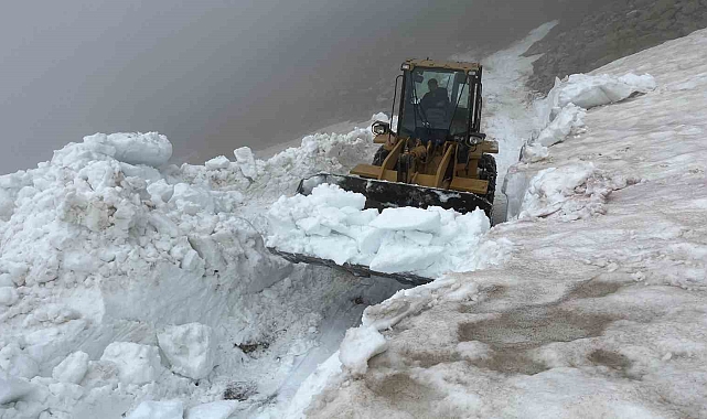 Rize'nin yüksek kesimlerinde yaz mevsimi gelmesine rağmen erimeyerek ulaşıma engel olan kar kütlelerinin temizleme çalışmaları hız kesmeden devam ediyor.