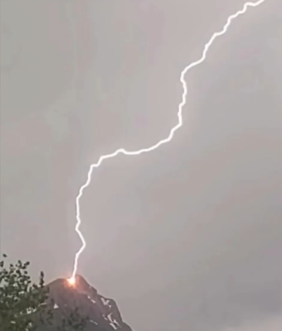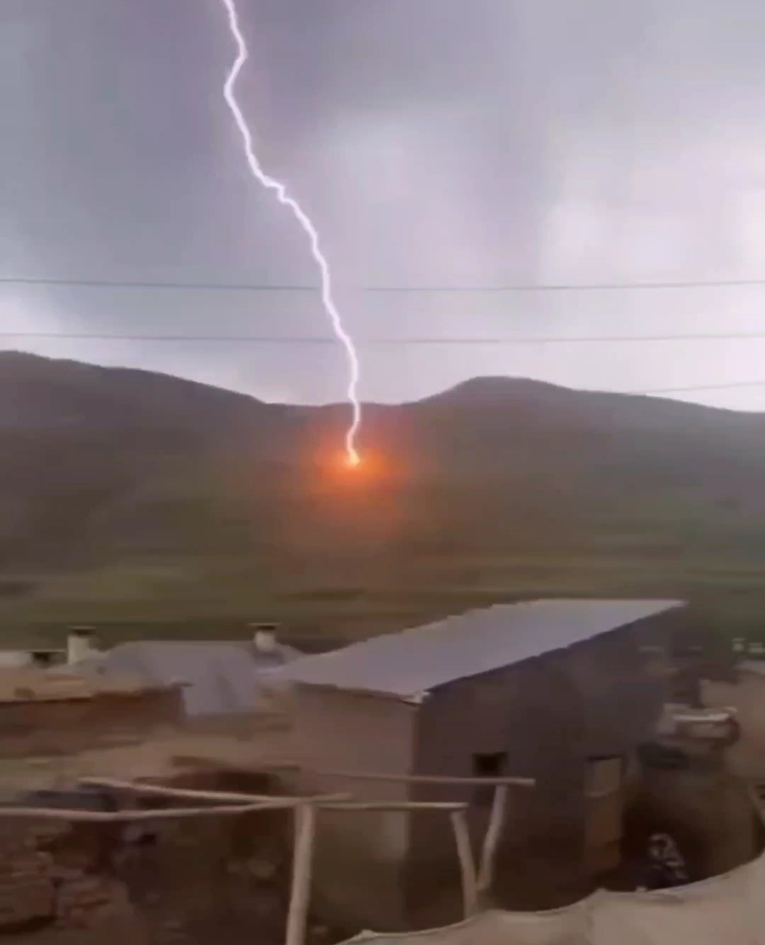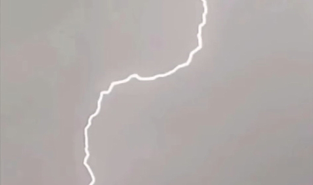 Van'da sağanak yağmur sonrası dağa yıldırım düştü.