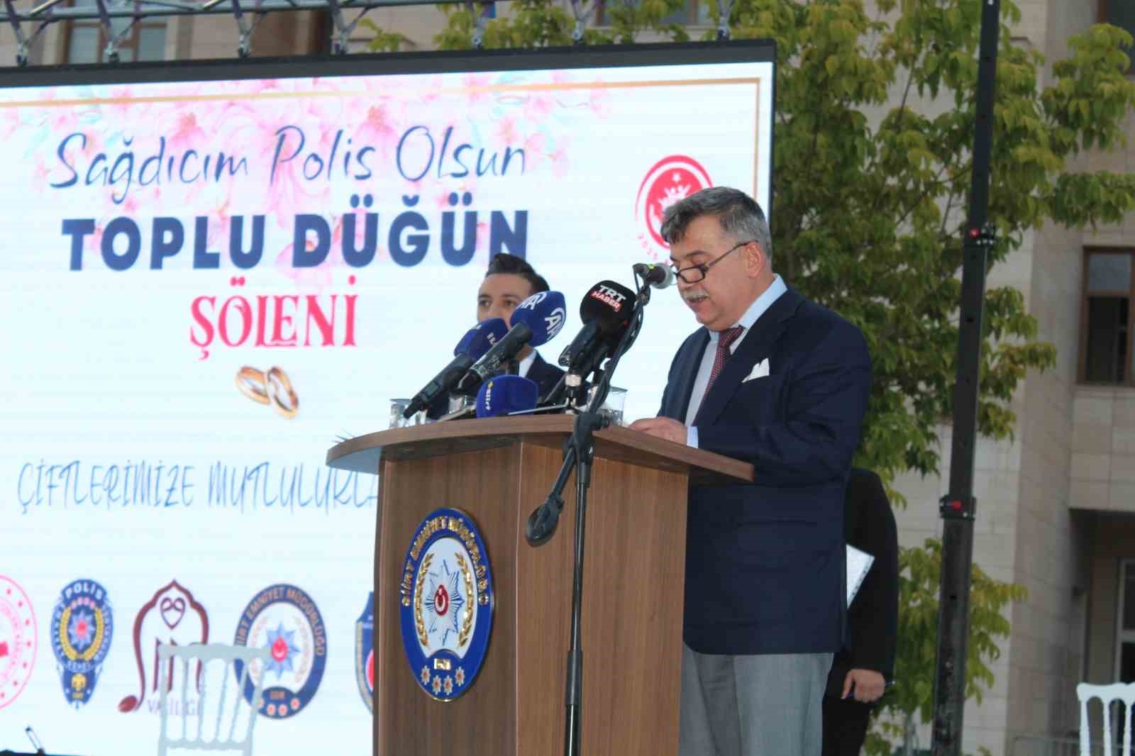 Siirt İl Emniyet Müdürü Necmettin Öztürk ise ailenin toplumun temeli olduğunu vurguladı. Öztürk, burada milletin temeli olan ailelerin kurulmasına şahitlik ettiklerini belirterek, "Bugün 80 gencin evet diyerek 40 yuvanın temelini attığını kaydetti. Cumhurbaşkanımızın 2025 yılını 'Aile Yılı' ilan etmesi bu merasimi düzenlememiz için en büyük motivasyonumuzdur. Çünkü biliyoruz ki güçlü aile olmadan güçlü Türkiye olmaz. Bugün Siirt Emniyet Müdürlüğü bahçesinde kurulan her çadır birliğimizin, kardeşliğimizin, ortak geleceğimizin çadırıdır" diye konuştu.