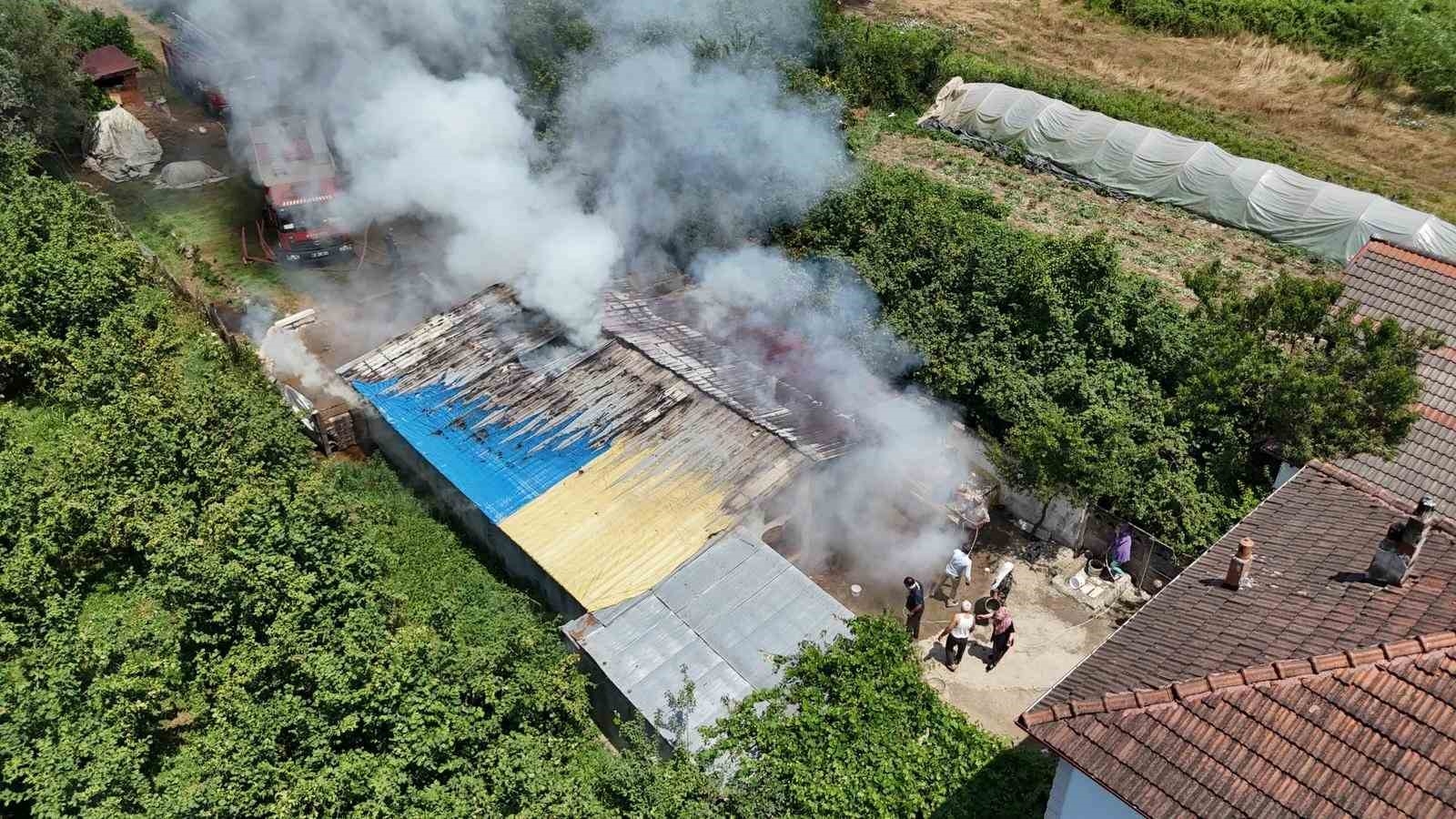Düzce'de samanlıkta çıkan ve fındıklık ile evlere sıçrama ihtimali olan yangın, itfaiye ekiplerinin müdahalesiyle söndürüldü. Yangında 7 büyükbaş hayvandan 3'ü telef oldu, 4'ü kurtarıldı.