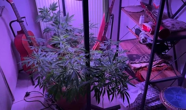 Samsun'da polis ekipleri, bir evin içinde kurulan kenevir serası tespit ederek operasyon düzenledi.