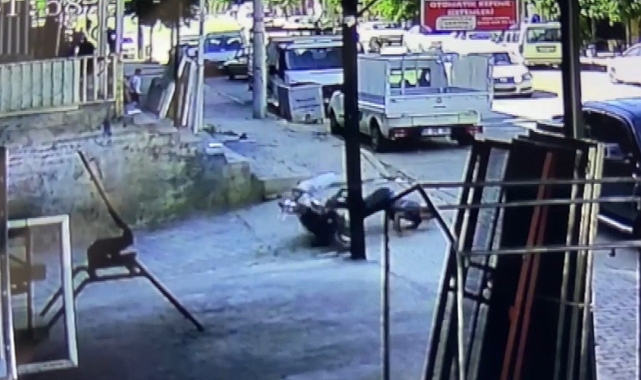 Şanlıurfa'nın Hilvan ilçesinde, sürücüsünün kontrolünden çıkan motosikletin devrildiği anlar güvenlik kamerasına yansıdı.