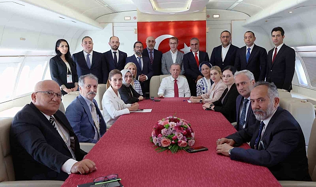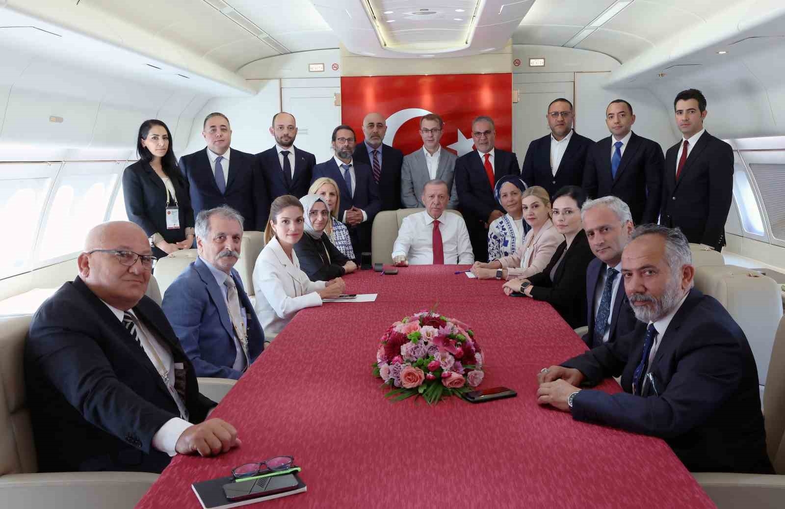 Cumhurbaşkanı Recep Tayyip Erdoğan KKTC ziyareti dönüştü uçakta gazetecilerle sohbet etti.