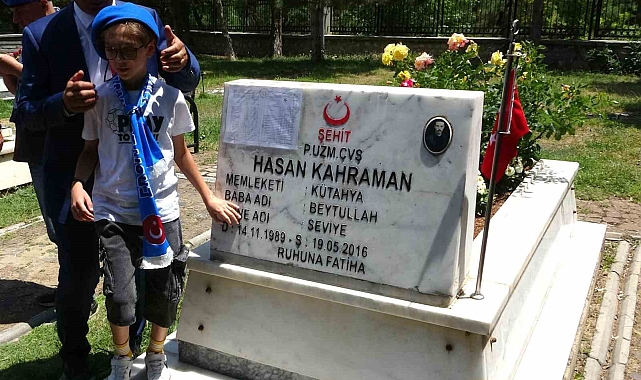 Kütahya'da 11 yaşındaki Gökalp Kahraman, 4. sınıfı başarıyla tamamlayarak aldığı karnesini, 2016 yılında şehit düşen babası Uzman Çavuş Hasan Kahraman'ın mezar taşına yapıştırarak duygusal anlar yaşattı.