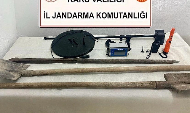 Kazı yapılan alanda jandarma ekiplerince yapılan detaylı aramada, 2 adet dedektör, 1 adet el telsizi, 2 adet kürek ve 1 adet levye ele geçirildi.