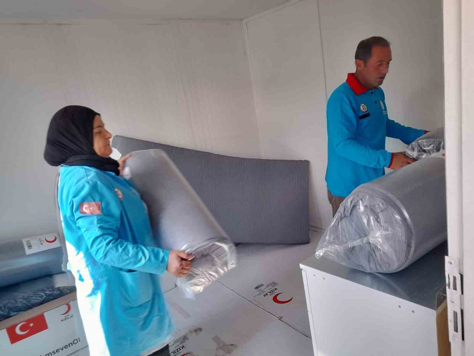 Kızılay ekipleri, afetten etkilenenler için 20 mutfak seti, 80 adet battaniye,80 adet yatak ve benzeri ihtiyaç malzemelerini bölgeye sevk etti.