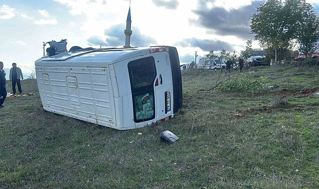 Karabük'te yoldan çıkarak ağaca çarptıktan sonra şarampole devrilen minibüsün sürücüsü yaralandı.