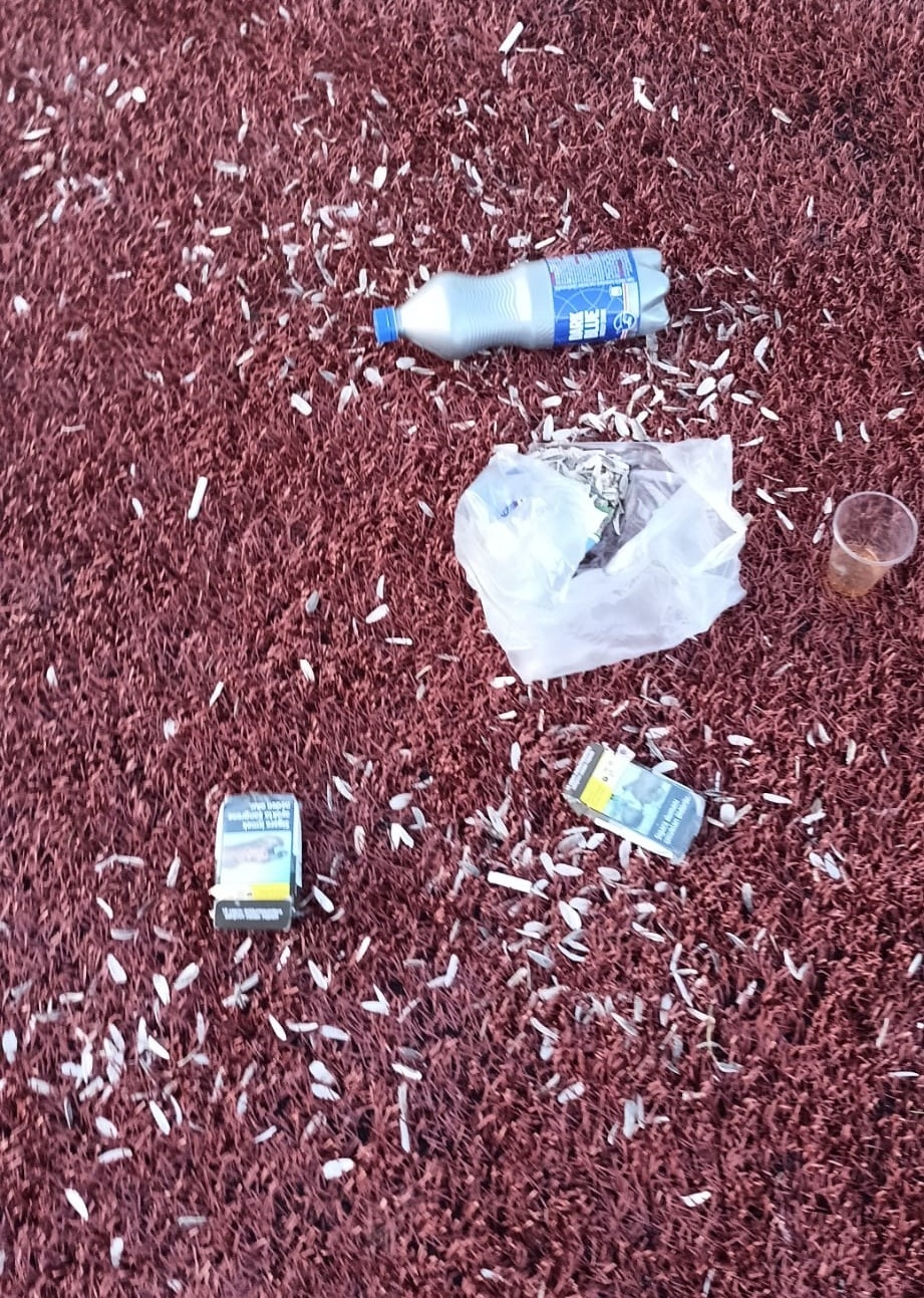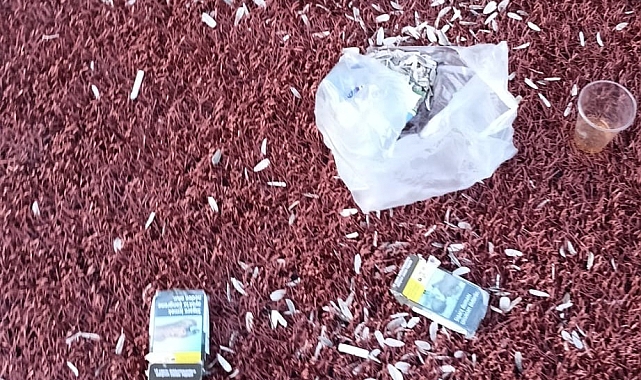 Denizli'de suni çim kaplanıp yeniden düzenlenen Buldan İlçe Stadı'nda sorumsuz seyirciler tarafından bırakılan çöpler tepki topladı.
