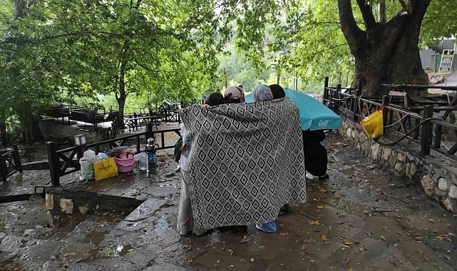 Safiye Akgül ise, sıcaktan kaçarak mesire alanına geldiklerini dile getirerek, yağmura yakalandıklarını ve döneceklerini kaydetti.