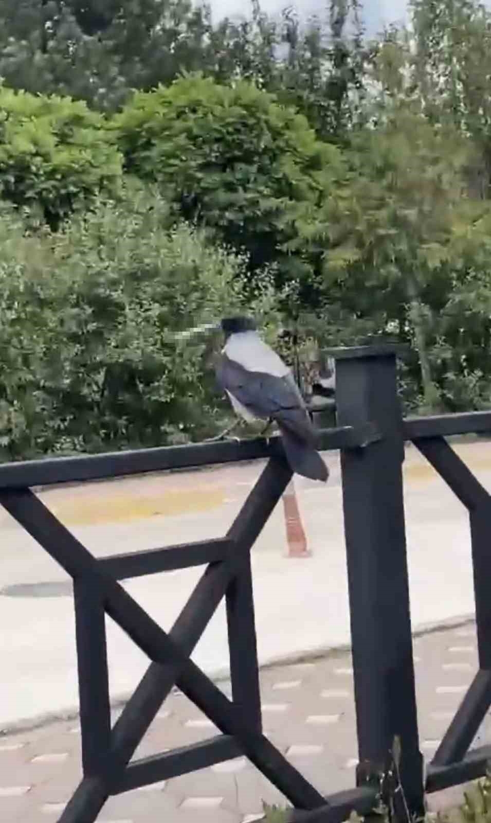 Tokat'ta bir karganın masadan sigara almasıyla sosyal medyada ilgi gören görüntüler izleyenleri güldürdü.