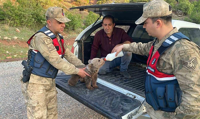 Siirt'te Jandarma tarafından bulunan yaralı Şahin koruma altına alınırken yavru ayıya süt verilip doğaya bırakıldı.