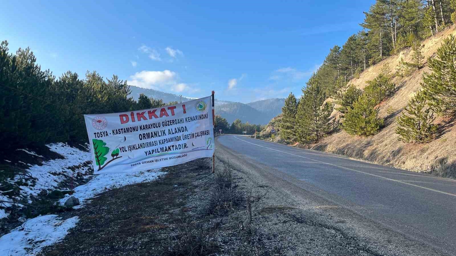 Kastamonu'nun Tosya ilçesinde, Orman İşletme Müdürlüğü tarafından yol güvenliğini artırmak amacıyla önemli bir proje hayata geçiriliyor. Özellikle kış mevsiminde ağaçlar sebebiyle güneş almayan Kastamonu-Tosya kara yolunda gizli buzlanmalar sebebiyle sık sık kazalar yaşanıyor. Gece virajları kapatan ağaçlardan sürücülerin birbirlerini geç fark etmesi de kazalara sebep oluyor. Yoldaki görüş mesafenin arttırılması ve yolun güneş görerek buzlanmanın önlenmesi için belirli noktalarda ağaç seyrekleştirme çalışması ile doğal ışıklandırma çalışması yapılıyor. Çalışmaların tamamlanmasıyla birlikte, yol güvenliğinin artırılması ve trafik akışının daha sağlıklı bir hale getirilmesi amaçlanıyor.