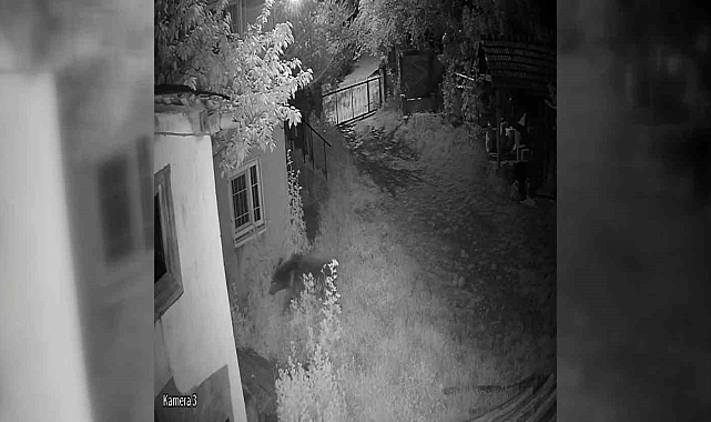 Sinop'un Ayancık ilçesine bağlı Aygördü köyünde yiyecek arayışındaki bir ayı, bir evin bahçesine girdi. Ayının bahçedeki sakin dolaşışı, evin güvenlik kamerasına saniye saniye yansıdı.
