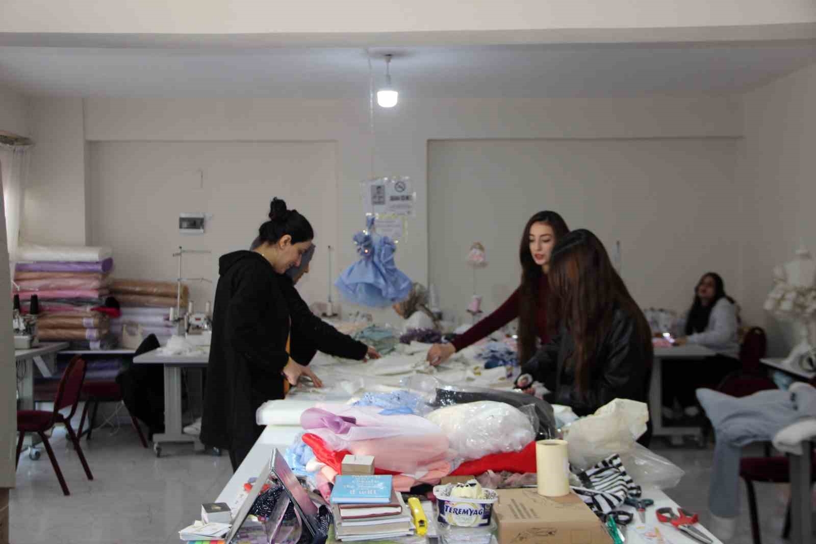 Atölyede çalışan Tuba Ebren, Ergün'e özendiklerini ifade ederek, "19 yaşındayım ve bir senedir burada çalışıyorum. Moda tasarım bölümünden mezun olduğum için birlikte işlerimizi yürütüyoruz. Bu mesleği çok severek yapıyorum. Azize Hanım'a çok özeniyorum. Ben de onun gibi ilerlemek ve kendimi geliştirmek istiyorum. Bana bayağı destek oluyor" dedi.