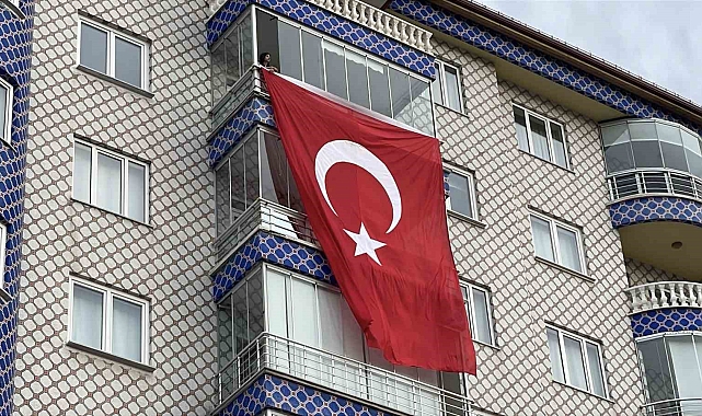 Ankara'nın Haymana ilçesinde aranan bir şahsı takip ederken geçirdiği kaza sonucu şehit olan Jandarma Astsubay Emre Polat'ın baba evine Türk bayrağı asıldı.
