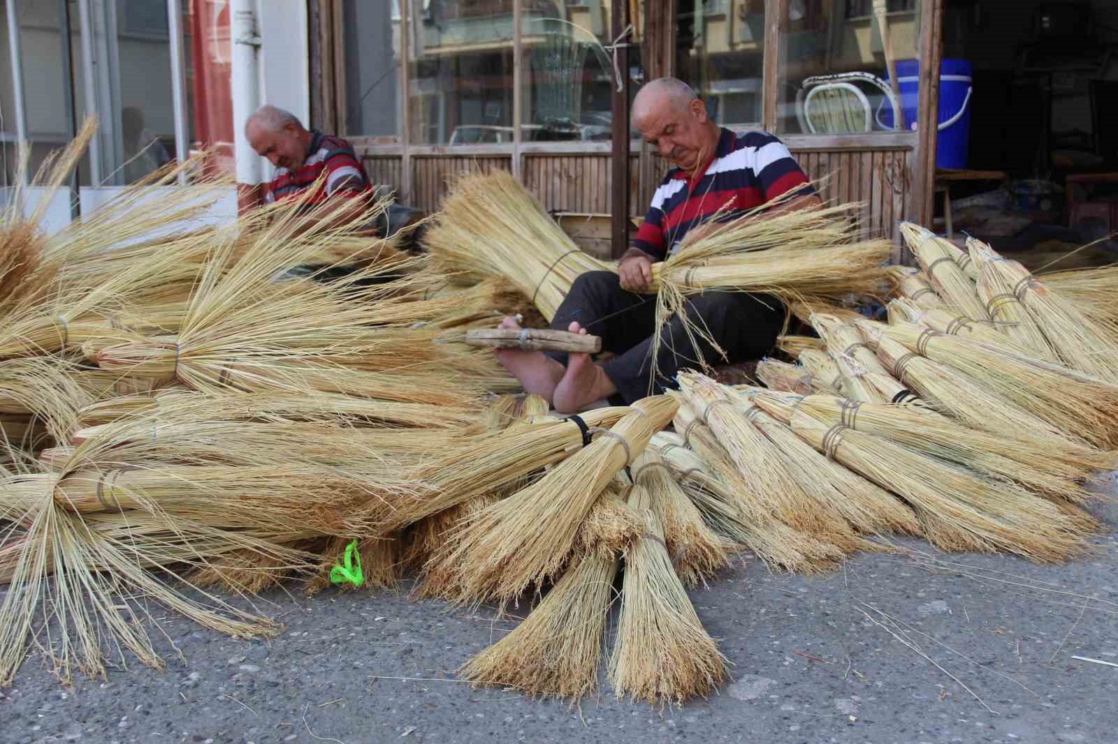 Samsun'un Çarşamba ilçesindeki son süpürge ustaları, yok olmaya yüz tutan meslekler arasında bulunan el süpürgeciliği mesleğini devam ettiriyor.