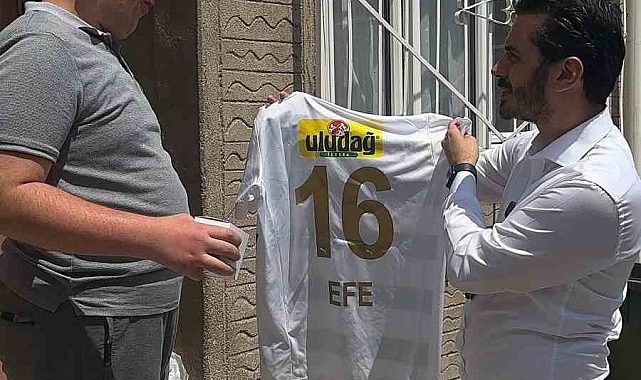 Merkez Osmangazi ilçesi Tuna Mahallesi'nde ikamet eden Efe, sosyal medya üzerinden AK Parti Osmangazi İlçe Başkanı Adnan Kurtuluş'a mesaj gönderdi. Mesajı alan Adnan Kurtuluş, Efe'nin ziyaretine gitti. Efe, sosyal medya hesabından esprili bir dille AK Parti Osmangazi İlçe Başkanı Adnan Kurtuluş'a, "Bana Bursaspor forması getirirseniz, sizi mahalleye sokarım" diye gönderme yaptı. Bu samimi mesajı yanıtsız bırakmayan İlçe Başkanı Adnan Kurtuluş Efe'yi ziyaret ederek, ismine özel hazırlatılan Bursaspor formasını kendi elleriyle takdim etti. Karşılıklı muhabbet ve tebessümle gerçekleşen buluşmada Efe'nin sevinci gözlerden kaçmadı.