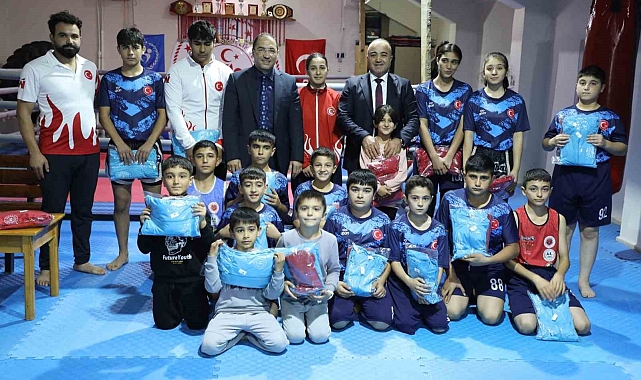 Spor salonlarında devam eden antrenmanları tek tek ziyaret eden Vali Yardımcıları ve İl Müdürü Çelebi, Bakanlık tarafından gönderilen eşofman takımlarını ve tişörtleri sporculara takdim ederek çalışmalarında başarılar diledi.
