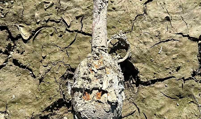 Adana'da suların çekildiği Seyhan Baraj Gölü'nde el bombası bulundu. Bomba imha uzmanları kontrollü şekilde el bombasını imha etti.