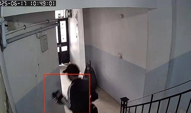 O anlar, apartmanın güvenlik kamerasına saniye saniye yansıdı. Görüntülerde, hırsızın sırtında taşıdığı koca poşeti bina girişine bırakarak üst katlarda dolaştığı ve çaldığı ayakkabıları poşetine doldurduktan sonra binadan ayrıldığı görülüyor.