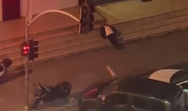 Sultangazi'de bir kişi, cadde üzerindeki merdivenlerde henüz bilinmeyen bir nedenle uyuya kaldı. Bu sırada yoldan geçen bir genç, eline aldığı plastik dubayı defalarca fırlatarak şahsı uyandırmaya çalıştı. O anlar ise bir cep telefonu kamerasına yansıdı.