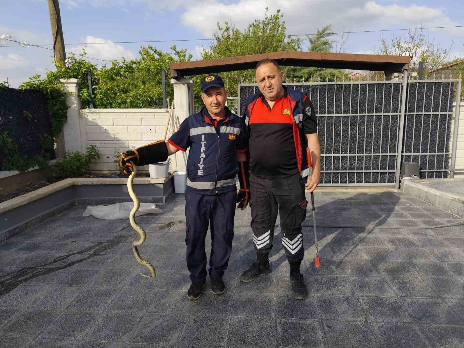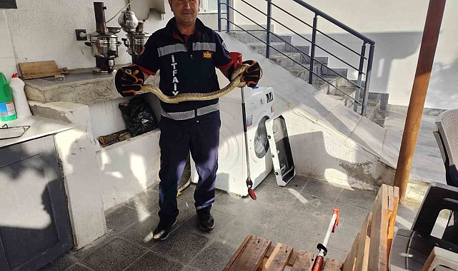 Çorum'un Sungurlu ilçesinde bir evin içine giren yılan, itfaiye ekiplerinin başarılı müdahalesiyle yakalanarak doğal yaşam alanına bırakıldı.
