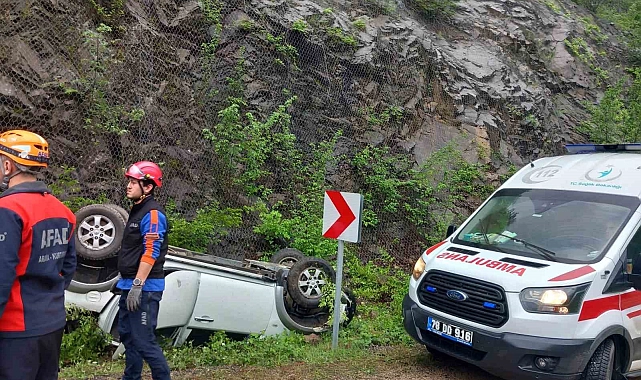 Karabük'te sürücüsünün kontrolünden çıkarak takla atması sonucu ters dönen otomobilde 2 kişi yaralandı.