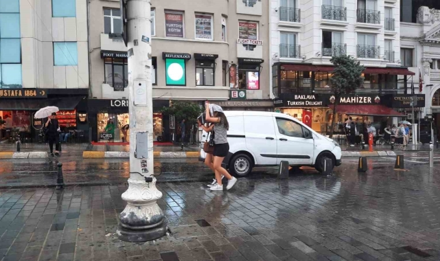 Meteorolojinin sağanak yağışın etkili olacağı uyarıların ardından İstanbul'da sağanak yağış başladı. Taksim'de kısa süreli etkili olan sağanak yağışa turistler ve vatandaşlar hazırlıksız yakalandı.