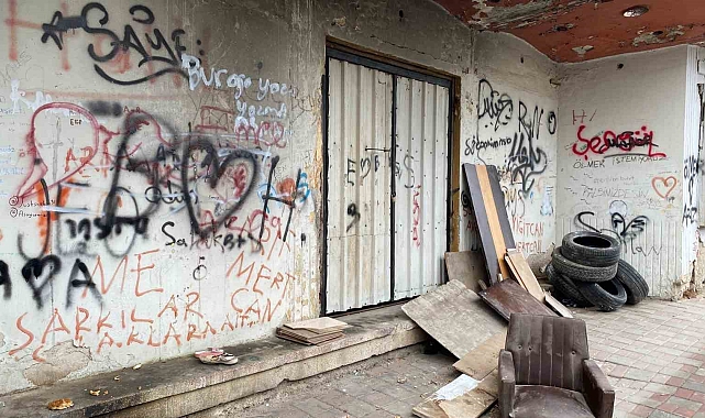 Aydın'ın Güzelhisar Mahallesi'nde bulunan atıl durumdaki tarihi Taşdöner Sineması'nın duvarlarındaki gelişigüzel yazılan yazılar görüntü kirliliği oluşturuyor.
