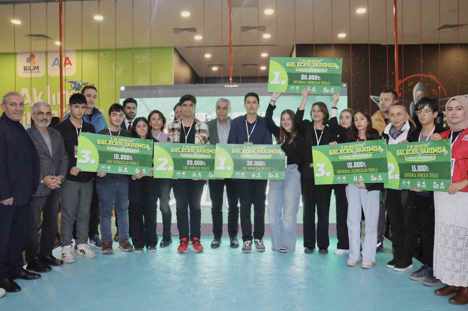Erzurum'da düzenlenen Gelecek Tarımda Proje Festivali'nde kazananlar belli oldu. Tarım ve teknolojiyi birleştirerek gençleri inovatif çözümler üretmeye teşvik eden festivalde, dereceye giren projeler ödüllendirildi. Ödüller, Erzurum Büyükşehir Belediyesi Genel Sekreteri Zafer Aynalı tarafından takdim edildi.