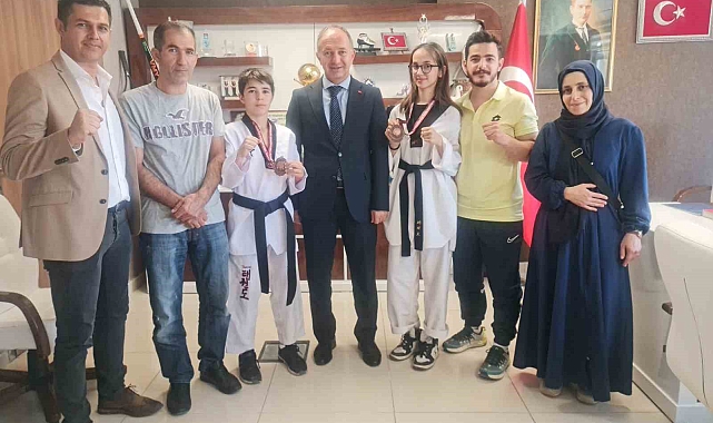 Erzurumlu taekwondoculardan Mehmet Fatih Çayakar miniklerde, Zeynep Diyarbakırlıoğlu ise yıldızlarda bronz madalya kazandı. Sporcular il temsilcisi Murat Yamanoğlu nezaretinde Gençlik ve Spor İl Müdürü Levent Çakmur'u ziyaret etti.