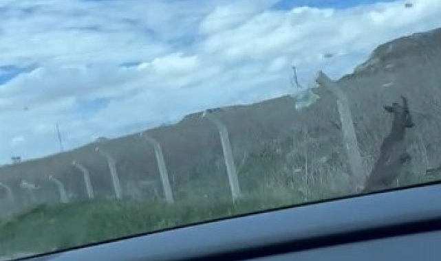 Yozgat'ın Sorgun ilçesinde Şeker Fabrikası yolunda bir karaca fabrika tarafından örülen tellerin arasında mahsur kaldı. O sırada yoldan geçen aracın çıkardığı sesle ürken ve ne tarafa kaçacağını bilemeyen karaca, cep telefonu kamerasıyla görüntülendi.