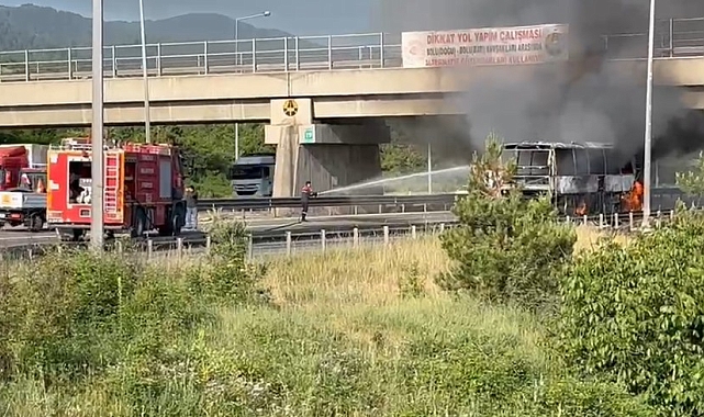 TEM Otoyolu'nun Bolu geçişinde, Köroğlu Rampaları mevkiinde seyir halindeki bir yolcu otobüsü alev alarak tamamen yandı. Yangın nedeniyle otoyolun İstanbul istikameti bir süre trafiğe kapatıldı ve uzun araç kuyrukları oluştu.